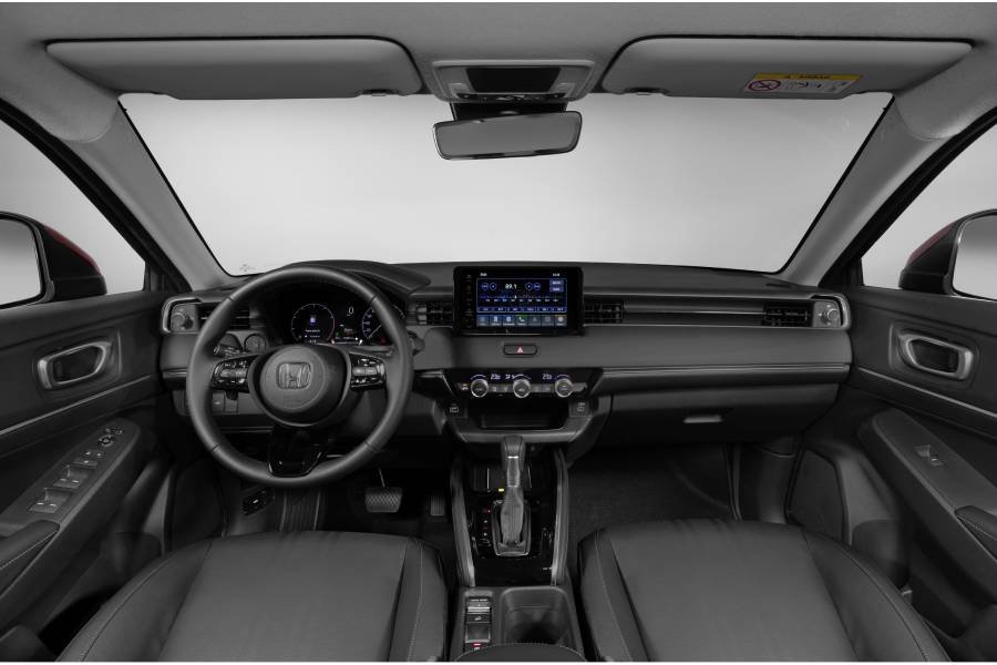 Quando se fala em segurança, o HR-V Touring sai de fábrica com o pacote Honda SENSING. O conjunto inclui controle de cruzeiro adaptativo, frenagem automática de emergência, assistente de permanência em faixa, detector de saída de pista, controle de aceleração e desaceleração em baixa velocidade e comutação automática dos faróis. Esses sistemas atuam de forma integrada aos controles de estabilidade e tração, ampliando a atuação eletrônica sobre o comportamento dinâmico do veículo.