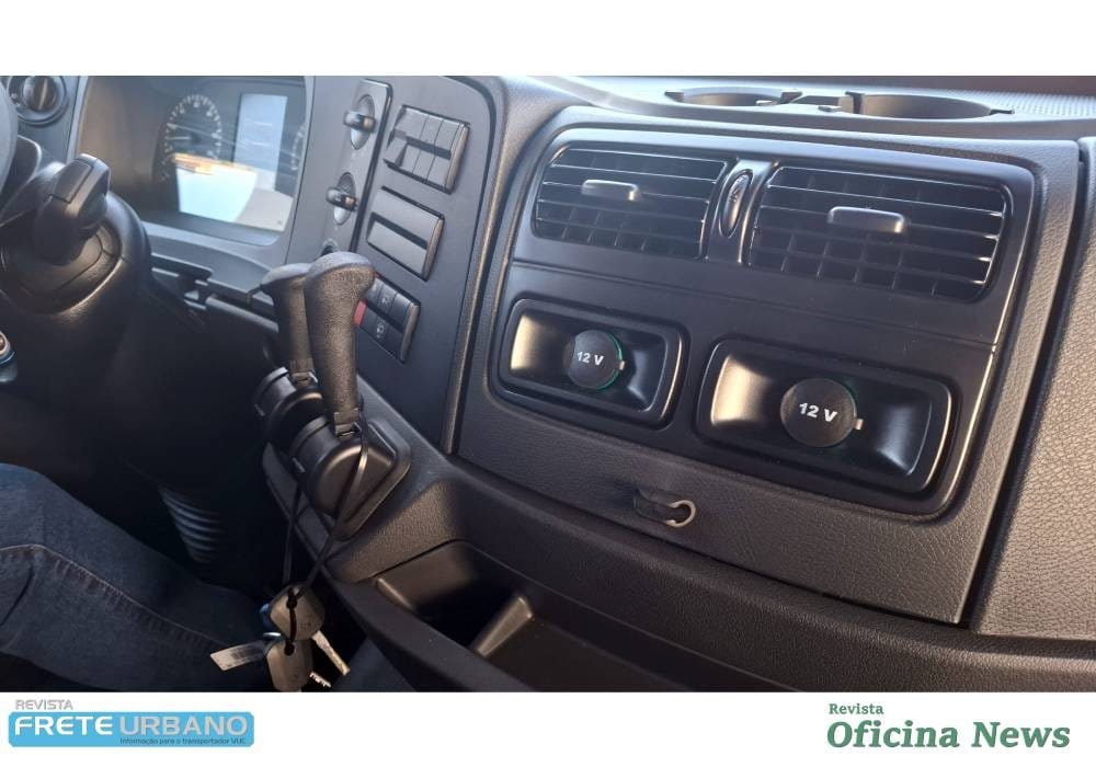 No interior, a cabina Leito Teto Baixo ou Leito Teto Alto possui suspensão pneumática de série e túnel de 200 mm, o que amplia a área de circulação interna. Para o motorista, isso significa mais facilidade para se movimentar e organizar o espaço de trabalho e descanso. O banco pneumático com 11 regulagens, o volante multifuncional, a nova alavanca combinada de câmbio e freio auxiliar na coluna de direção e o painel com display de 12,7 cm com sistema EcoSupport são itens pensados para reduzir fadiga e apoiar a condução econômica. Chave inteligente e partida por botão completam a lista de equipamentos.