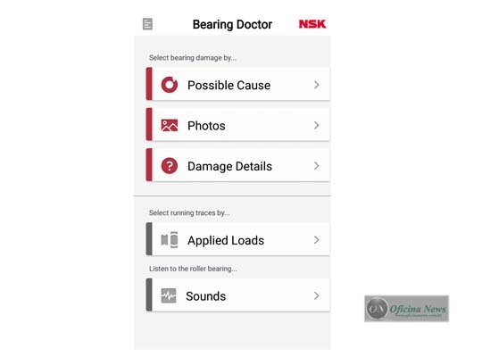 Para facilitar o serviço de manutenção, a NSK apresenta aplicativo de identificação de falhas em rolamentos, uma ferramenta gratuita, que traz novidades como uma biblioteca de sons. Denominado NSK Bearing Doctor, o aplicativo é mundial e ajuda a identificar possíveis falhas nos rolamentos por meio da análise visual da peça, podendo comparar com fotos de ocorrências similares.