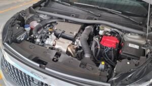 A transmissão é automática CVT, com sete marchas emuladas no modo manual. No modo automático, opera de forma continuamente variável, priorizando regimes de maior eficiência. A tração é dianteira, com diferencial incorporado à caixa.