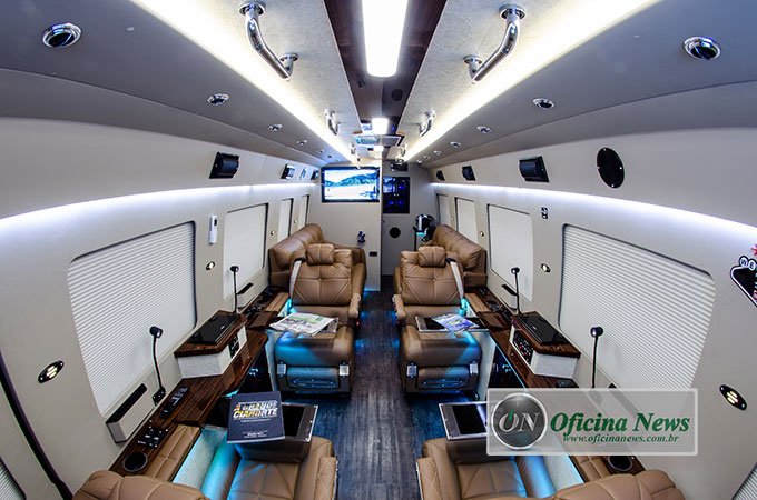 O veículo pode acomodar 10 passageiros e está equipado com recursos multimídia, como wi-fi, quatro poltronas, sendo duas com massageador, dois sofás, duas TVs de LED de 32” e 50”, um videogame PlayStation 3, dois frigobares, um bar, uma adega, uma cafeteira e outros itens de entretenimento, como a Apple TV, que permite reproduzir o conteúdo que uma pessoa tem no computador, iPad, iPhone ou iPod Touch direto na TV. Além disso, o JetBus é discreto e não possui identificação para preservar a privacidade dos clientes.