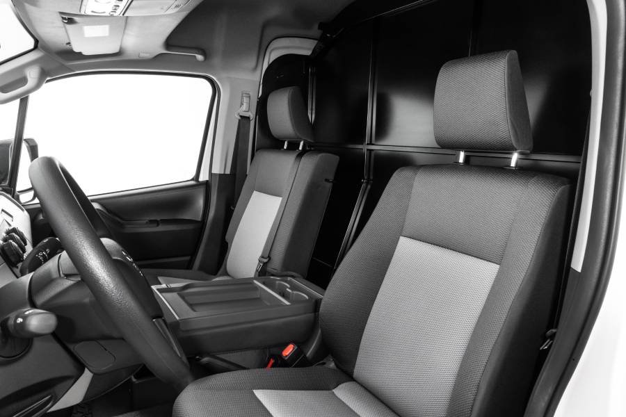 Em segurança, a estrutura da van conta com zonas de absorção de impacto e reforços do tipo ring frame ao longo da carroceria. O modelo é equipado com três airbags, controles de tração e estabilidade, assistente de partida em rampa, câmera de ré e sensores de estacionamento dianteiros e traseiros.