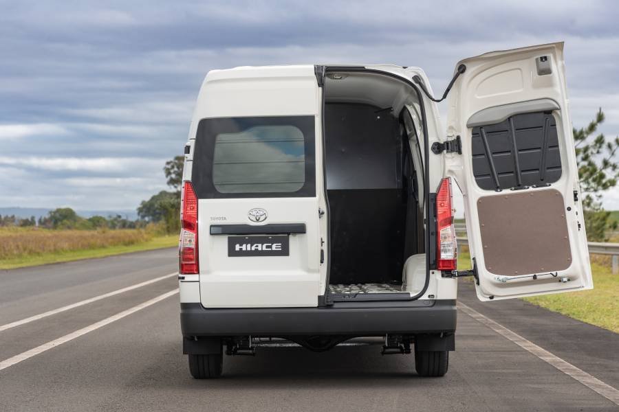A Hiace Furgão foi projetada para aplicações profissionais intensivas e oferece capacidade de carga de até 1.055 kg, com volume útil de 9,3 m³. O acesso ao compartimento traseiro pode ser feito pela porta dupla bipartida na traseira, com abertura de até 270 graus, ou pelas portas deslizantes localizadas em ambos os lados da carroceria, configuração pouco comum no segmento e que facilita operações de carga e descarga em áreas urbanas.