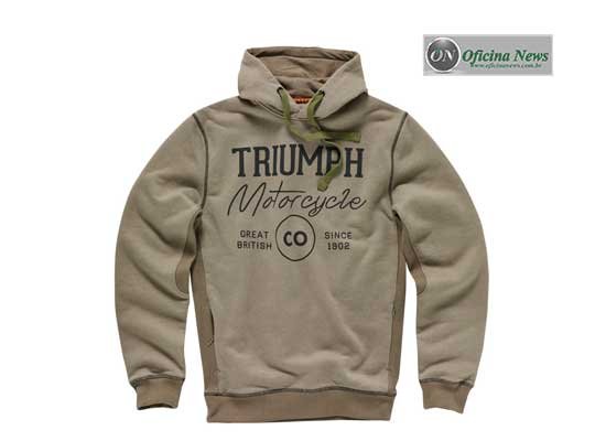 A nova coleção de roupas e acessórios pessoais da marca de motocicletas Triumph chega com 76 itens para os públicos feminino e masculino, incluindo produtos como jaquetas, moletons, calças, balaclavas, luvas térmicas, camisas, camisetas, botas, relógios, óculos de sol, mochilas e malas para viagens, entre outros.