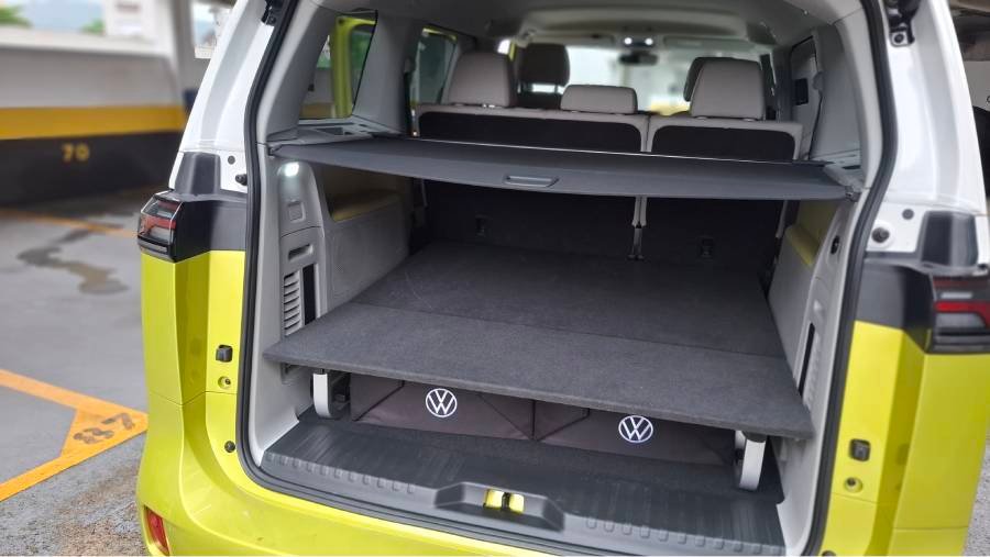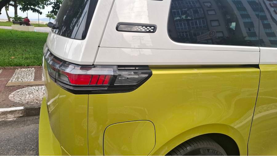 Nosso modelo era versão para passageiros, com até cinco assentos, mas na Europa existe uma ID. Buzz Cargo, com capacidade de volume de carga de cerca de 3,9 m³. Um carro que continua sendo espaçoso e funcional, como a Kombi que marcou gerações de motoristas e transportadores urbanos. A diferença está na eletrificação, na conectividade e nos recursos de assistência à condução.