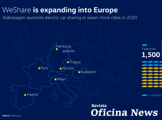 Serviço de compartilhamento de carros da Volkswagen e da SKODA sem utilização de bases fixas, o WeShare é expandido na Alemanha e em outros países europeus em 2020. Praga, na República Checa, e Hamburgo, na Alemanha, receberão o serviço na próxima primavera europeia (segundo trimestre do ano) e devem ser seguidas por Paris, Madri, Budapeste, Munique e Milão. Em todas essas cidades, o sistema WeShare disponibilizará uma frota de veículos totalmente elétricos com um total aproximado de 8.400 carros. Em Praga e Budapeste, o WeShare trabalhará em cooperação com a marca SKODA. Nas outras grandes cidades da Alemanha, França, Espanha e Itália, os veículos WeShare oferecidos incluirão os modelos e-Golf1 e e-up2 da Volkswagen, assim como, a partir do final do ano, o ID.33. O WeShare iniciou suas operações em Berlim em 2019, já com 1.500 carros e-Golf. A empresa conta agora com 50 mil clientes registrados na cidade.